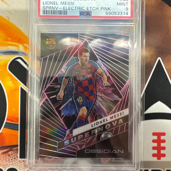 2019 Panini Obsidian Soccer Lionel Messi Supernova Electric Etch Pink 10/11 PSA 9