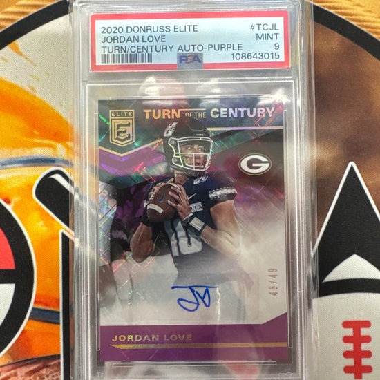 2020 Panini Donruss Elite NFL Jordan Love Turn Of The Century Rookie Autograph Purple /49 PSA 9