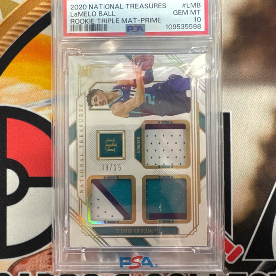 2020 Panini National Treasures LaMelo Ball Rookie Triple Materials Prime /25 PSA 10