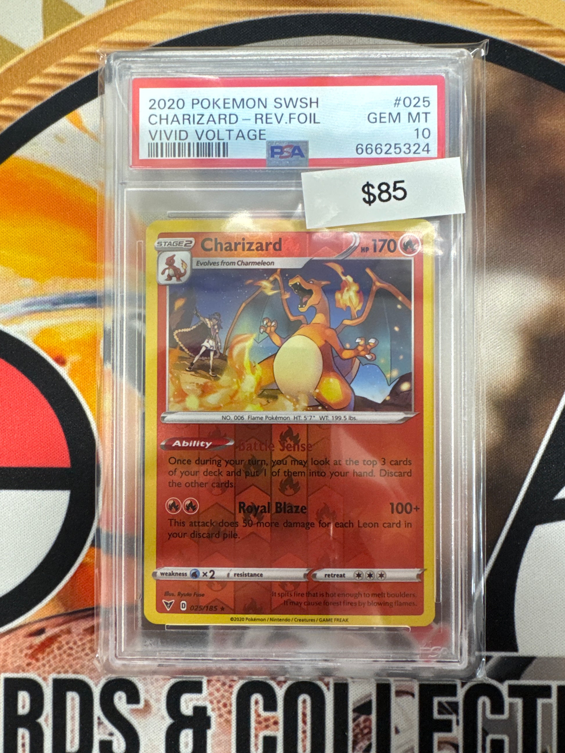 2020 Pokemon SWSH Charizard Reverse Foil Vivid Voltage 025/185 PSA 10