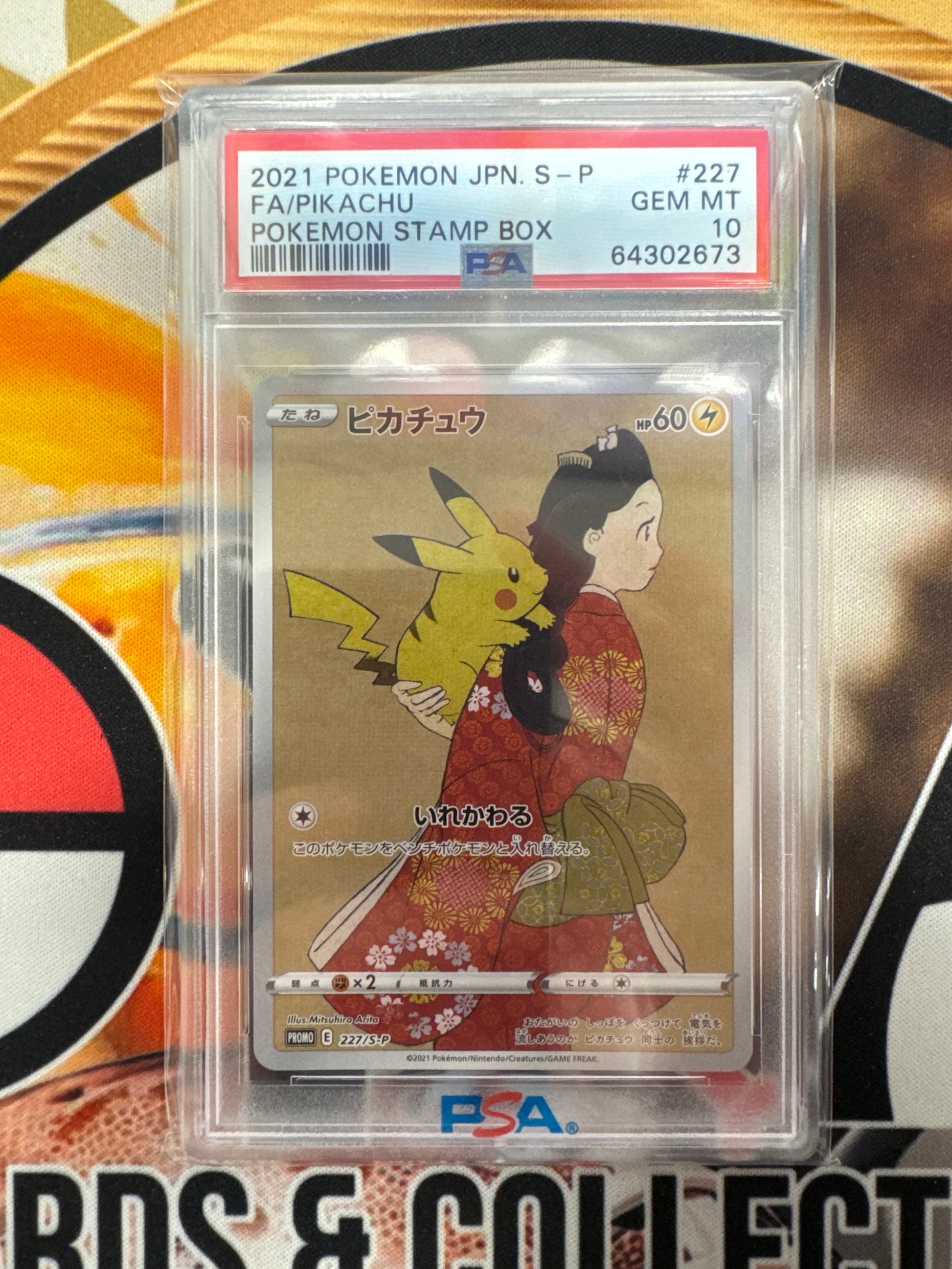 2021 Pokemon Japanese S-P Full Art Pikachu Pokemon Stamp Box 227/S-P PSA 10