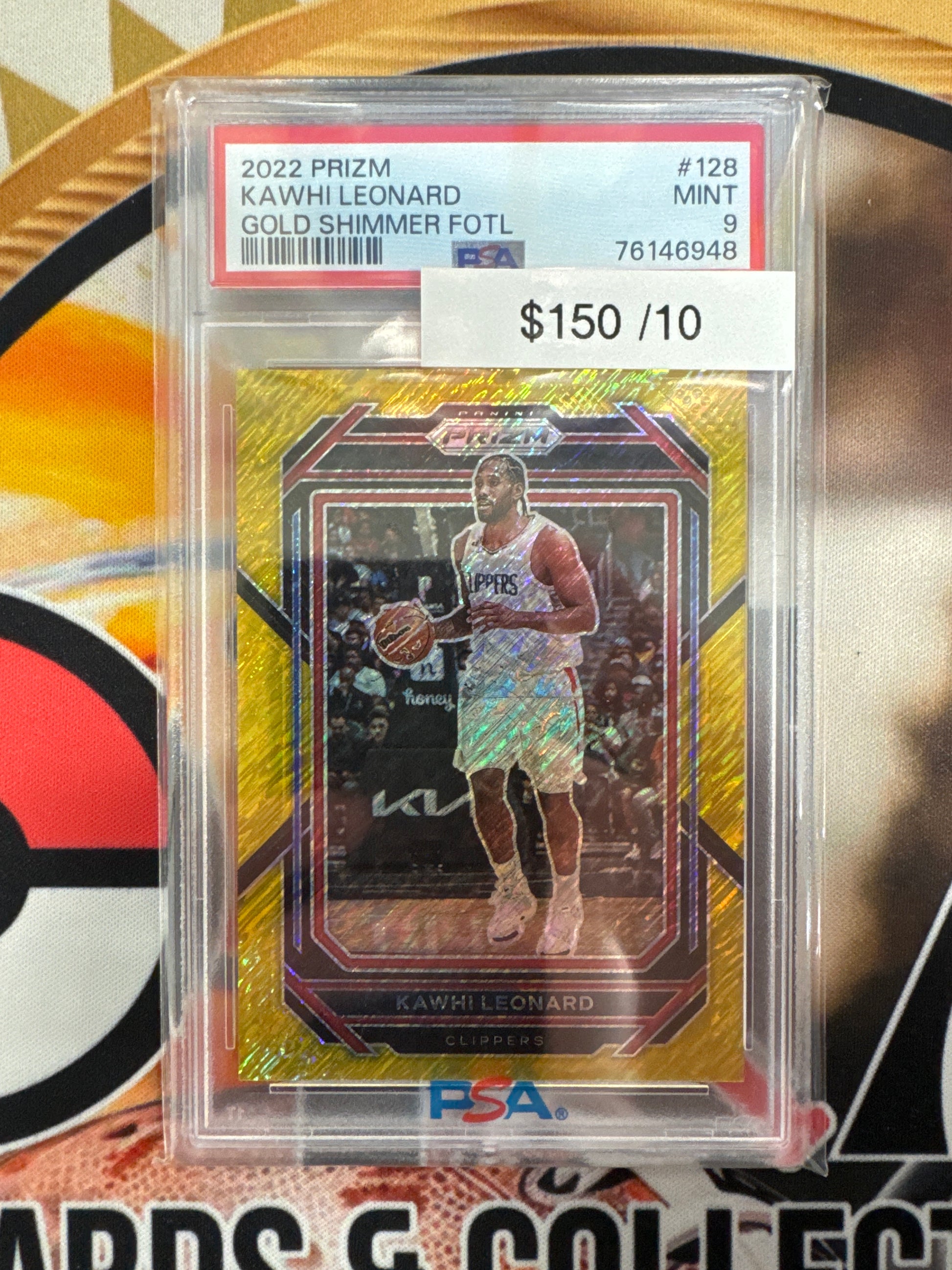 2022 Panini Prizm NBA Kawhi Leonard Gold Shimmer FOTL /10 PSA 9