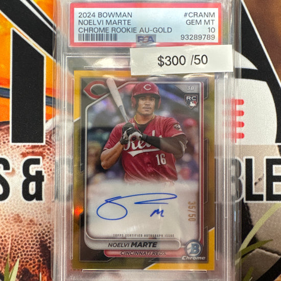 2024 Bowman MLB Noelvi Marte Chrome Rookie Autograph Gold /50 PSA 10