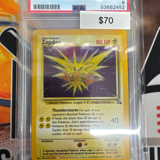 Pokémon Zapdos Holo Fossil 15/62 PSA 8